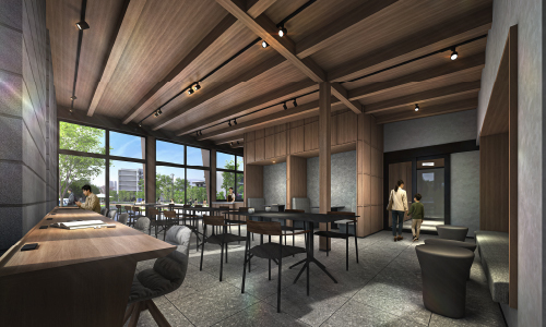 キャンパスパークに面したコミュニティカフェは、ワークショップに使える個室や貸出可能なキッチンを備えた、地域の交流の中心地。地域にも開かれ、多彩な学びイベントが開催される予定です。